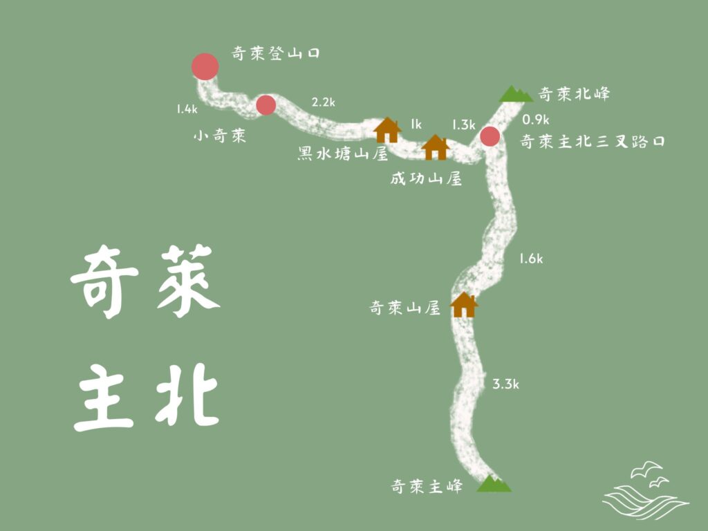 - 奇萊山屋後方下切有弱水源可取水,但旱季可能缺水